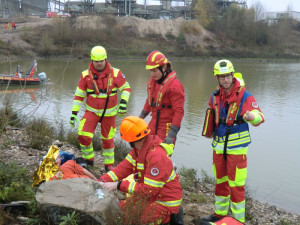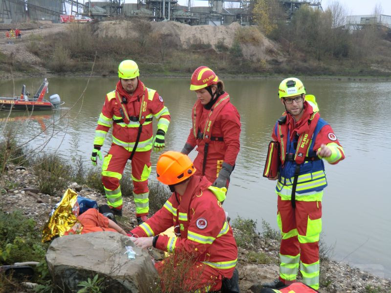 In einer Kiesgrube am Niederrhein wurden verschiedene Lagen durchgespielt, bei denen die Helfer ihre Zusammenarbeit und Einsatzroutine stärken konnten. Neben einem gefluteten Auto mussten unsere Einsatztaucher unter anderem eine „vermisste Person“ (Puppe) lokalisieren und bergen.